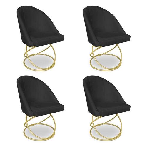 Kit 04 Cadeiras Poltrona De Jantar Bela Veludo Preto Base Metálica Luxo Dourado - Pallazio
