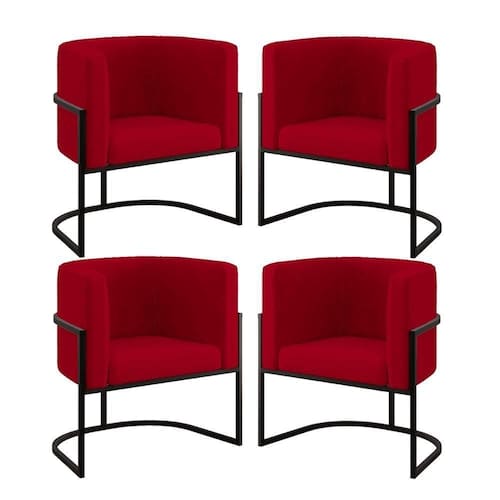 Kit 04 Cadeiras Poltrona Lua Preto Para Sala Quarto Balaqui Cor:vermelho Vermelho