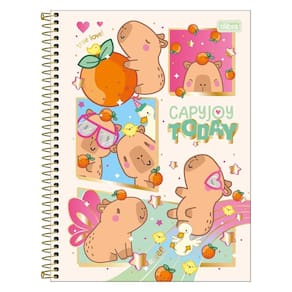O Caderno Espiral Capa Dura Universitário 1 Matéria Capyclub 80 Folhas possui capa dura com a parte interna decorada, bolsa de papel decorada para guardar trabalhos e anotações e folha com adesivos funcionais. Ideal para o dia a dia na escola ou na faculdade.