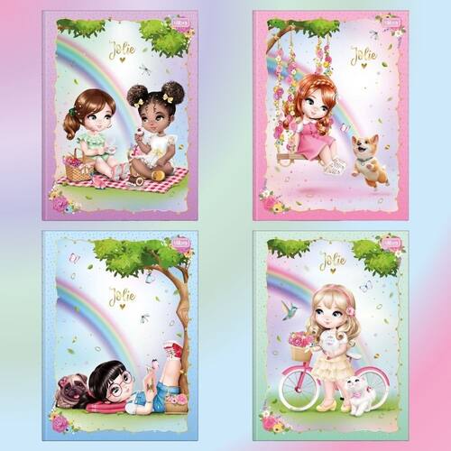 O Caderno Brochura Capa Dura Universitário Jolie 48 Folhas possui capa dura, parte interna decorada, folha dupla de adesivos e folhas pautadas. Ideal para o dia a dia na escola.