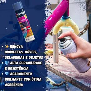Tinta Spray 400ml Azul Escuro Uso Geral em Aço Ferro Couro Gesso Cerâmica A Tinta Spray 400ml Azul Escuro Uso Geral é a solução prática para renovar superfícies de metal, gesso, couro e cerâmica. Ideal para dar vida nova a bicicletas, móveis, eletrodomésticos e objetos em geral, garantindo um acabamento moderno e duradouro. Com fórmula de alta qualidade, oferece excelente aderência e acabamento Brilhante, além de resistência superior contra desgastes do dia a dia. Sua cobertura uniforme realça os detalhes e proporciona um resultado em poucas camadas. Prática e fácil de aplicar, a tinta spray seca ao toque em apenas 15 minutos, permitindo agilidade nos trabalhos e economia de tempo. O rendimento de até 2 m por demão garante maior aproveitamento do produto e ótimo custo-benefício. Diferenciais: Acabamento Brilhante com ótima aderência Alta durabilidade e resistência em ambientes internos e externos Secagem rápida e aplicação prática com cobertura uniforme Especificações TÉCNICAS: Volume: 400ml Rendimento: até 2 m por demão Superfícies indicadas: metal, gesso, couro e cerâmica Secagem: toque em 15 minutos Acabamento: Brilhante Recomendação: uso de primer para melhor desempenho Itens INCLUSOS: 04 Tintas Spray 400ml Azul Escuro Uso Geral Marca: Não Informado Ean: 7894141437749