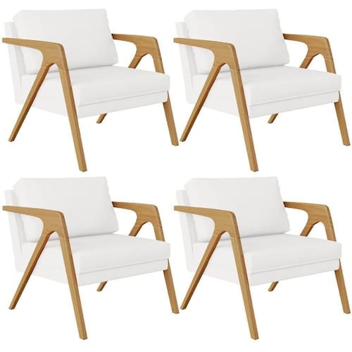 O Kit 04 Poltrona Decorativa Para Sala Pietra Estrutura De Madeira L02 Corano Branco - Lyam Decor se sobressai em qualquer ambiente, permite diversas combinações harmônicas e ainda proporciona muito aconchego para sua decoração! O da estrutura de madeira com o revestimento em corano, somados ao seu design geométrico garantem extrema idade, além de expressar toda a elegância que ele possui.