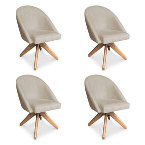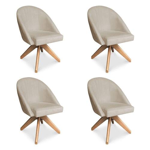 Kit 04 Poltronas Cadeira Giratória Bela Veludo Base De Madeira - Pallazio Cor Preto