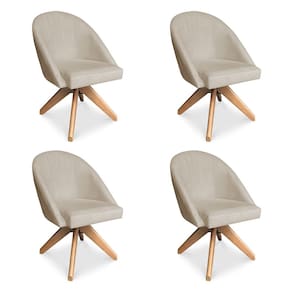 Kit 04 Poltronas Cadeira Giratória Bela Veludo Bege Base de Madeira - Pallazio