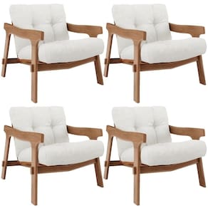 ProductInstructions: Produto para uso em ambiente interno, nao devendo ficar exposto ao sol, calor e umidade excessivos. | ProductWeight: 75 kg | Color: Branco | ColorFamily: Branco | ColorSimple: Branco | ColorSupplier: Canela e Branco | Material: Estrutura em Madeira, Espuma, Revestimento Couríssimo e Bouclê | MaterialFamily: Madeira, Espuma | Model: Ikary | OriginCountry: | OriginState: PR | ProductContents: 04 Poltronas | SizeDescription: Altura: 150 cm x Largura: 85 cm x Profundidade: 150 cm | SupplierSimpleName: Kit 04 Poltronas Decorativa Fixa Para Sala Living Ikary L02 Canela Bouclê Branco - Lyam Decor | ProductLength: 150 cm | ProductWidth: 85 cm | ProductWarranty: 90 dias após o do produto | ProductHeight: 150 cm | Cor: Branco