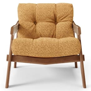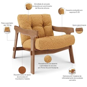 Revestimento do assento e da almofada do encosto em Bouclê na cor Mostarda.