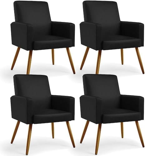 Kit 04 Poltronas Decorativa Para Sala De Estar Maria W01 Pés Palito Couríssimo Preto - Lyam Decor