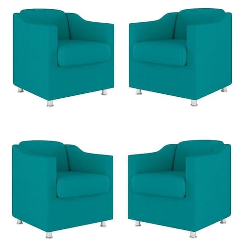 Kit 04 Poltronas Decorativas Sala De Espera Clinica Suede Cor:azul Turquesa