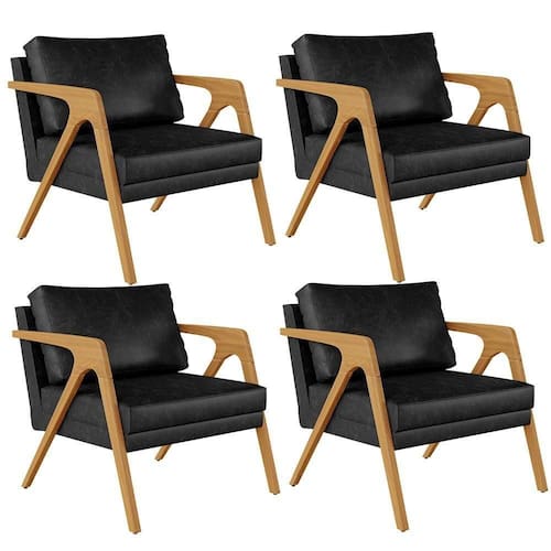 Kit 04 Poltronas Estrutura Madeira L02 Preto Brilho