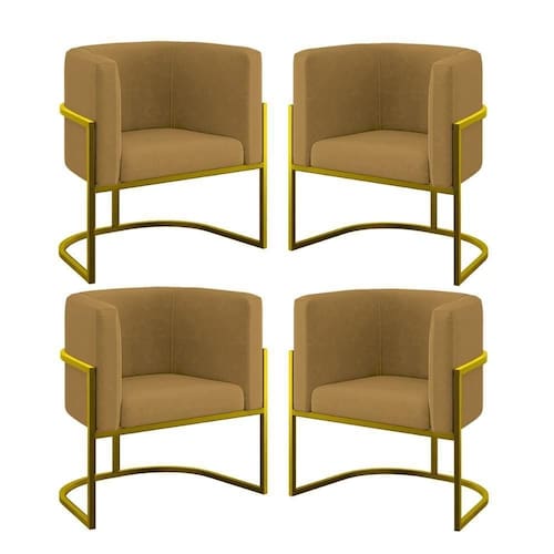 Kit 04 Poltronas Lua Sala Decorativa Base De Ferro Gold Cor:capuccino Capuccino