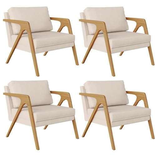 O Kit 04 Poltronas Decorativas Para Sala Estar Pietra Estrutura De Madeira L02 Suede Bege - Lyam Decor se sobressai em qualquer ambiente, permite diversas combinações harmônicas e ainda proporciona muito aconchego. A mistura da estrutura de madeira com o revestimento convencional dela, somados ao seu ar geométrico garantem extrema idade e personalidade para sua decoração.