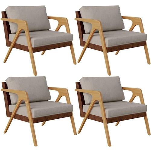 O Kit 04 Poltronas Decorativas Para Sala De Estar Pietra L02 Couríssimo Marrom Linho Bege - Lyam Decor se sobressai em qualquer ambiente, permite diversas combinações harmônicas e ainda proporciona muito aconchego para sua decoração! O link da estrutura de madeira com a composição de revestimentos em linho e couríssimo, somados ao seu design geométrico garantem extrema idade, além de expressar toda a elegância que ele possui.