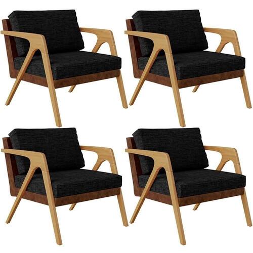 O Kit 04 Poltronas Decorativas Sala De Estar Pietra L02 Couríssimo Marrom Linho Chumbo - Lyam Decor se sobressai em qualquer ambiente, permite diversas combinações harmônicas e ainda proporciona muito aconchego para sua decoração! O link da estrutura de madeira com a composição de revestimentos em linho e couríssimo, somados ao seu design geométrico garantem extrema idade, além de expressar toda a elegância que ele possui.