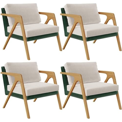 O Kit 04 Poltronas Decorativas Sala Estar Pietra L02 Facto Verde Musgo Linho Cru - Lyam Decor se sobressai em qualquer ambiente, permite diversas combinações harmônicas e ainda proporciona muito aconchego para sua decoração! O link da estrutura de madeira com a composição de revestimentos em linho e facto, somados ao seu design geométrico garantem extrema idade, além de expressar toda a elegância que ele possui.