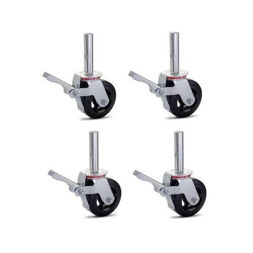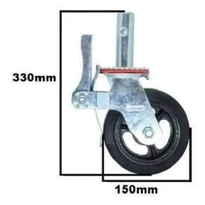 Rodizio para andaime colson com freio glef62bfr- nbr 6494 e nr 18características- antirrisco- base em aço- rodizio de borracha- roda em ferro fundido- com freio para travamentocapacidade- carga máxima por rodízio: 225 kg- o kit com 4 rodas suporta até 900 kg- para movimento, subtraia 30% da capacidade- não aconselhável movimentação em áreas irregulares com muito pesodados técnicoseixo: 32mmaltura do rodízio: 33cmdiâmetro da roda: 15cmlargura da roda: 4,5cmcomposição: borracha e ferro Marca: Colson Rodizios Ean: 1178001153847
