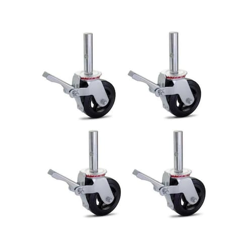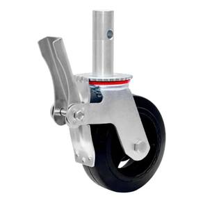 Rodizio para andaime colson com freio glef62bfr- nbr 6494 e nr 18características- antirrisco- base em aço- rodizio de borracha- roda em ferro fundido- com freio para travamentocapacidade- carga máxima por rodízio: 225 kg- o kit com 4 rodas suporta até 900 kg- para movimento, subtraia 30% da capacidade- não aconselhável movimentação em áreas irregulares com muito pesodados técnicoseixo: 32mmaltura do rodízio: 33cmdiâmetro da roda: 15cmlargura da roda: 4,5cmcomposição: borracha e ferro Marca: Não Informado
