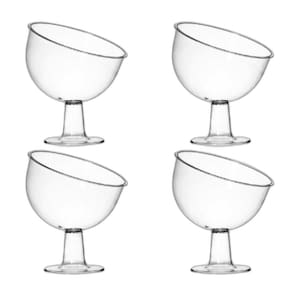 Taça inclinada ou Boca torta com pedestal, fabricada em poliestireno PS, moderna e resistente, utilizada e recomendada por profissionais de sucesso. Qualidade e sofisticação em suas festas e eventos, para servir sobremesas, salada de frutas, bolo gelado, gelatina, marshmallow, serviços de bomboniere, servir capsulas de café e muito mais.