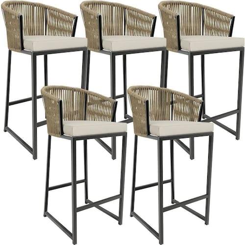 Kit 05 Banqueta Para área Gourmet Cozinha Varanda Corda Náutica Sunset D04 Bege - Lyam Decor