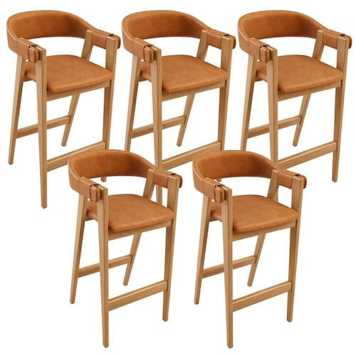 ColorSupplier: Whisky | Color: Marrom | ColorFamily: Marrom | ColorSimple: Marrom | Material: Estrutura em Madeira, Revestimento em Couro sintético e espuma | MaterialFamily: Madeira, couro sintético e espuma | Model: Nadja | OriginCountry: Nacional | OriginState: PR | ProductContents: 05 Banquetas | ProductHeight: 260 cm | ProductInstructions: Produto para uso em ambiente interno, nao devendo ficar exposto ao sol, calor e umidade excessivos. | ProductLength: 53 cm | ProductWarranty: 90 dias após o recebimento do produto | ProductWeight: 50 kg | ProductWidth: 52 cm | SizeDescription: Altura: 260 cm x Largura: 52 cm x Profundidade: 53 cm | SupplierSimpleName: Kit 05 Banquetas Alta Bar Cozinha Sala de Jantar Bar Nadja L02 Couríssimo Whisky - Lyam Decor