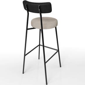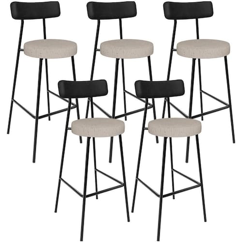 Kit 05 Banquetas Alta Bar Cozinha Sala De Jantar Milão L02 Couríssimo Preto Linho Bege - Lyam Decor