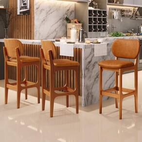 Amplamente sofisticada, o Kit 5 Banquetas Alta Para Cozinha Fixa Betta L02 Imbuia Couríssimo Canela - Lyam Decor irá agregar ainda mais valor em sua decoração!! Sendo capaz de compor muito bem o ambiente, é produzida com materiais de excelente qualidade, a resistente estrutura em madeira de Taeda, na cor imbuia, conta com apoio para os pés (que garante maior segurança), além do assento e encosto estofados super confortáveis e convidativos, que são revestidos em tecido Couríssimo, extremamente elegante.