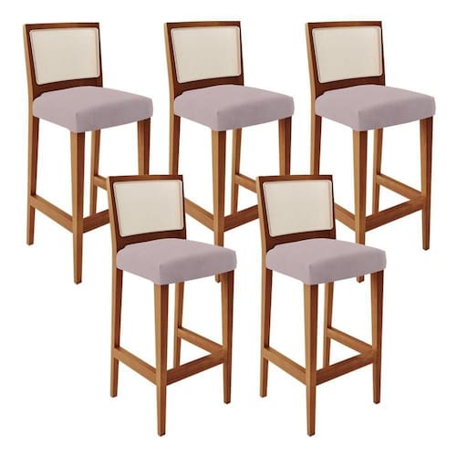 O Kit 05 Banqueta Alta Para Cozinha Sala de Jantar Fixa Telado Branco Zion L02 Suede Rosê - Lyam Decor, possui um estilo rustico que faltava para deixar sua casa ainda mais clássica. Seu encosto com o detalhe de tela sintética na cor branca trazem ainda mais estilo e destaque para sua decoração, junto com assento estofado que proporciona horas de conforto. A estrutura e o apoio para os pés, são responsáveis por garantir maior à mesma.