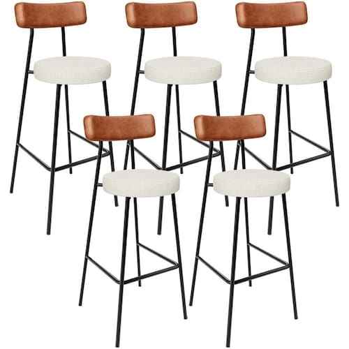 Kit 05 Banquetas Alta Cozinha Sala Jantar Milão L02 Couríssimo Camel Linho Champagne - Lyam Decor