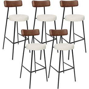 Kit 05 Banquetas Alta Cozinha Sala Jantar Milão L02 Couríssimo Marrom Linho Champagne - Lyam Decor