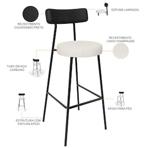 Amplamente moderna, dispondo de muito realce e design singular, o Kit 05 Banquetas Alta Bar Cozinha Sala De Jantar Em Aço Milão L02 Couríssimo Preto Linho Champagne - Lyam Decor vem com a personalidade e elegância que sua decoração merece! Estruturada em aço carbono, contrasta lindamente com o encosto e assento estofados, cabe mencionar ainda o revestimento do seu encosto em Couríssimo e do assento em Linho, é confeccionada por materiais de excelente qualidade, extremamente resistentes e aconchegantes.