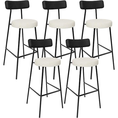 Kit 05 Banquetas Alta Cozinha Sala Jantar Milão L02 Couríssimo Preto Linho Champagne - Lyam Decor