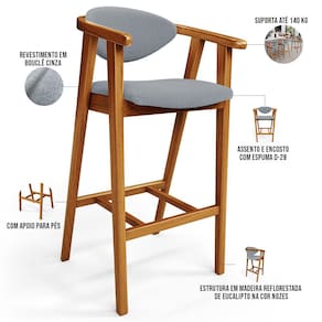 A melhor escolha para os momentos de confraternização no aconchego da sua casa, acaba de chegar! O Kit 05 Banquetas Alta Para Cozinha Bancada Bar Sala de Jantar Fixa Cecília L02 Bouclê Cinza - Lyam vem com a personalidade e elegância que sua decoração merece! É ideal desde refeições rápidas, até um Happy Hour com os amigos, família. Seu design único valoriza o ambiente, sem deixar pra trás a beleza e qualidade! Para deixar a sua área gourmet mais aconchegante, ela possui assento e encosto estofados, confeccionados com materiais de excelente qualidade, e extremamente resistentes.