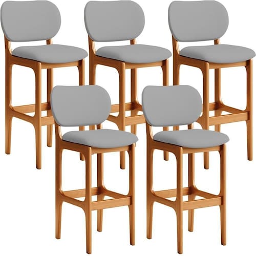 Amplamente sofisticado, o Kit 05 Banquetas Alta Para Cozinha Madeira Fixa Betta L02 Imbuia Facto Cinza - Lyam Decor irá agregar ainda mais valor em sua decoração!! Sendo capaz de compor muito bem o ambiente, é produzido com materiais de excelente qualidade, a resistente estrutura em madeira de Taeda, na cor imbuia, conta com apoio para os pés (que garante maior ), além do assento e encosto estofados super confortáveis e convidativos, que são revestidos em tecido Facto , composição extremamente elegante.