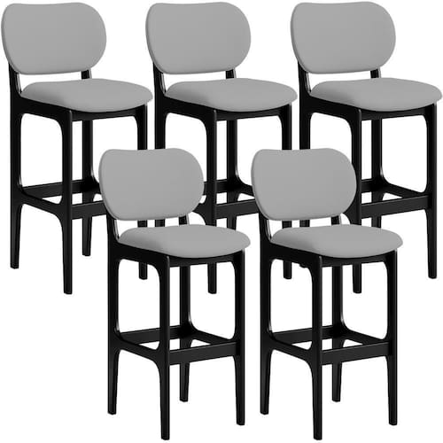 Amplamente sofisticado, o Kit 05 Banquetas Alta Bar Cozinha Sala Jantar Fixa Betta L02 Preto Facto Cinza - Lyam Decor irá agregar ainda mais valor em sua decoração!! Sendo capaz de compor muito bem o ambiente, é produzido com materiais de excelente qualidade, a resistente estrutura em madeira de Taeda, na cor preto, conta com apoio para os pés (que garante maior ), além do assento e encosto estofados super confortáveis e convidativos, que são revestidos em tecido Facto , extremamente elegante.