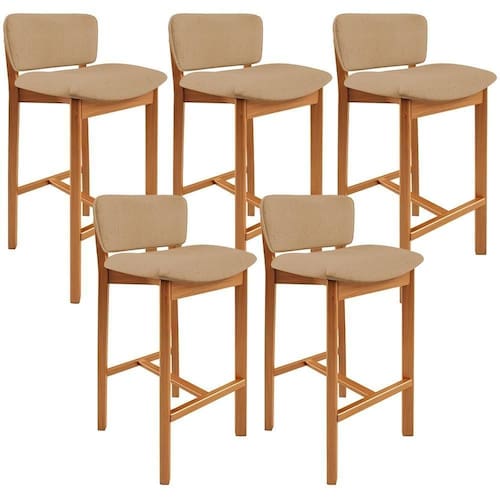 Na cozinha ou qualquer outro ambiente, o Kit 05 Banquetas Alta Para Cozinha Sala de Jantar Bar Dara se destaca por seu design clássico, sem deixar de exaltar a delicadeza deste modelo. Com uma estrutura de madeira que exala nobreza e sofisticação, essa banqueta estofada é o convite perfeito para momentos de confraternizar. O estofado macio, harmoniza com os demais elementos do ambiente, além do encosto proporcionar muito conforto enquanto se desfruta de momentos incríveis com aconchego. A vida é feita de pequenas celebrações, e essa banqueta está pronta para torná-las ainda mais especiais. Adicione ao seu carrinho e aproveite!