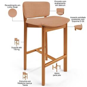 Cor: Rosê | ProductHeight: 83 cm | Diâmetro: na | MaterialFamily: Madeira e Espuma | Com estofado: Sim | ProductContents: 05 Banquetas | OriginState: PR | Tipo de produto: Banqueta | ProductLength: 47 cm | Largura: 47 cm | Requer montagem: Não | Material do estofamento: Linho | É empilhável: Não | Altura do assento a partir do solo: 74 cm | Profundidade do assento: 37 cm | OriginCountry: | Model: Banqueta Dara | Estilo: Clássico | ProductWeight: 50 kg | Com apoio de braços: Não | Com espaço de armazenamento: Não | Altura da cadeira: 83 cm | É cadeira de balanço: Não | Material: Madeira e Espuma | Color: Rosê | ProductInstructions: Produto para uso residencial em ambiente interno, não devendo ficar exposto diretamente ao sol, calo | ProductWarranty: 90 dias após o do produto | Peso máximo suportado: 150 Kg | Com rodas: Não | Fabricante: Lyam Decor | SupplierSimpleName: Kit 05 Banquetas Alta Para Cozinha Sala de Jantar Bar Dara L05 Linho Rosê - Lyam Decor | SizeDescription: Altura: 83cm x Largura: 47cm x Profundidade: 47cm | É dobrável: Não | Peso: 50 kg | Cor do assento: Rosê | Cor da estrutura da cadeira: Castanho | ProductWidth: 47 cm | Quantidade de Caixas de embalagem: 1 | Desenho do tecido: Liso | Cor do estofamento: Rosê | Espessura do assento: na | Largura do assento: 45 cm | Profundidade da cadeira: 47 cm | Largura da cadeira: 47 cm