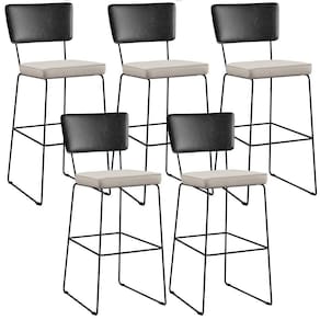 O espetáculo que é o Kit 05 Banquetas Altas Cozinha Sala Jantar Fixa Allana L02 Couríssimo Preto Linho Cru - Lyam Decor vem para agregar ainda mais valor na decoração da sua casa. Sua estrutura em aço remete-nos ao estilo industrial que surgiu em Nova York no século XX, já o assento e encosto estofados trazem equilíbrio e conforto criando a combinação perfeita para o ambiente.