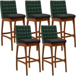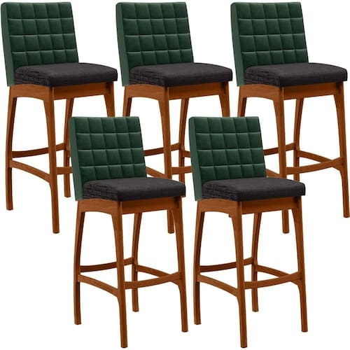 ndo muita excelência, o Kit 05 Banquetas Altas Cozinha Sala Jantar Fixa Mila B04 Facto Verde Musgo Linho Chumbo - Lyam Decor é o complemento que faltava para deixar sua casa ainda mais extraordinária. Seu encosto com costura em padrão quadriculado e assento estofados, centralizam em si uma graciosidade estonteante, sem perder todo o conforto. A estrutura em madeira, na cor nozes, também é digna de notoriedade, por imprimir bastante personalidade a sua decoração. Vale ressaltar ainda, o apoio para os pés que garante maior à banqueta.