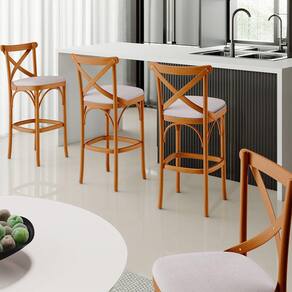 Kit 05 Banquetas Altas Cozinha Bancada Bar Sala de Jantar Estofada Ávila L02 Linho Bege - Lyam