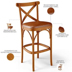 As banquetas têm ocupado um papel de destaque na decoração qualquer ambiente, pensando nisso a Banqueta Ávila chega trazendo um design moderno, confortável e prático. Seu assento estofado traz charme e o conforto ideal a você e sua família. Quando o assunto é versatilidade, ela se propõe a agradar todos os estilos e se encaixar em bares, áreas gourmet, bancadas, cozinhas, salas de jantar e estar e até restaurantes. Sua estrutura em madeira maciça, garante e ainda adiciona toques de elegância e harmonia ao seu espaço. Garanta estilo ao seu ambiente e adquira já a sua!! Dimensões do produto (L x A x P) 50 x 103 x 56 cm Medidas Internas: Altura do encosto: 30 cm Altura do chão ao assento: 77 cm Largura do assento: 44 cm Profundidade do assento: 43 cm Largura total do encosto: 50 cm Altura do chão ao apoio de pés: 29,5 cm Largura do encosto: 36,5 cm Características: Estrutura em Madeira Maciça, com acabamento envernizado. Revestimento em Couríssimo na cor Camel, de alta qualidade. Assento estofado com espuma D-23. Suporta até 150 kg. - Produto entregue montado. - Por se tratar de estofado as medidas podem ter uma pequena variação de até 3 cm. - A tonalidade do produto real poderá ter ligeira variação devido o lote de tecidos. - A limpeza deve ser feita com pano umedecido em água limpa, sem esfregar, não utilizar produtos abrasivos, desengordurantes, álcool ou solvente. Observações importantes: - Produto para uso residencial em ambiente interno, não devendo ficar exposto diretamente ao sol, calor e umidade excessivos. - Pode haver alguma diferença de tonalidade entre a imagem e o produto real, por conta do tratamento de imagens e a calibração de cores do seu monitor. - As imagens são meramente ilustrativas, não acompanham objetos de decoração e eletrônicos. - Ao receber a mercadoria, o cliente deve verificar as condições da embalagem, caso haja alguma não assine o de . - Montagem, desmontagem e outras instalações serão de responsabilidade do cliente. Não nos responsabilizamos, no ato da , por subir escadas/elevadores ou pelo por guincho em apartamentos. Eventuais despesas são de responsabilidade do comprador. - Confira as dimensões do produto e certifique-se de que passará normalmente por supostos elevadores, portas, escadas e/ou corredores de sua residência. Color: Caramelo | ColorFamily: Caramelo | ColorSimple: Caramelo | ColorSupplier: Caramelo | Material: Madeira Maciça | MaterialFamily: Madeira | Model: Ávila | OriginCountry: | OriginState: PR | ProductContents: 05 Banquetas | ProductHeight: 103 cm | ProductInstructions: Produto para uso em ambiente interno, nao devendo ficar exposto ao sol, calor e umidade excessivos. | ProductLength: 56 cm | ProductWarranty: 90 dias após o do produto | ProductWeight: 50 kg | ProductWidth: 50 cm | SizeDescription: Altura: 103 cm Largura: 50 cm Profundidade: 56 cm | SupplierSimpleName: Kit 05 Banquetas Altas Cozinha Bancada Bar Sala Jantar Estofada Ávila L02 Couríssimo Camel - Lyam