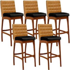 ndo muita excelência, o Kit 05 Banquetas Alta Para Cozinha Sala De Jantar Fixa Mila B04 Couríssimo Whisky Couríssimo Preto - Lyam Decor é o complemento que faltava para deixar sua casa ainda mais extraordinária. Seu encosto com costura em padrão quadriculado e assento estofados, centralizam em si uma graciosidade estonteante, sem perder todo o conforto. A estrutura em madeira, na cor nozes, também é digna de notoriedade, por imprimir bastante personalidade a sua decoração. Vale ressaltar ainda, o apoio para os pés que garante maior à mesma.