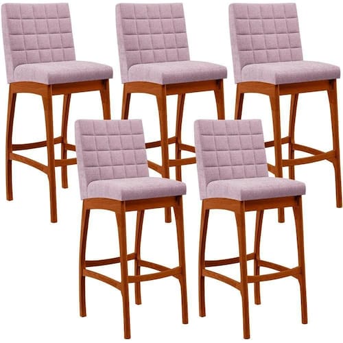 ndo muita excelência, o Kit 05 Banquetas Altas Para Cozinha Sala De Jantar Fixa Mila B04 Bouclê Rosê - Lyam Decor é o complemento que faltava para deixar sua casa ainda mais extraordinária. Seu encosto com costura em padrão quadriculado e assento estofados, centralizam em si uma graciosidade estonteante, sem perder todo o conforto, sendo revestidos pelo riquíssimo tecido em bouclê que por si só já é um espetáculo. A estrutura em madeira, na cor nozes, também é digna de notoriedade, por imprimir bastante personalidade a sua decoração. Vale ressaltar ainda, o apoio para os pés que garante maior à banqueta.