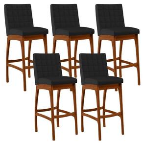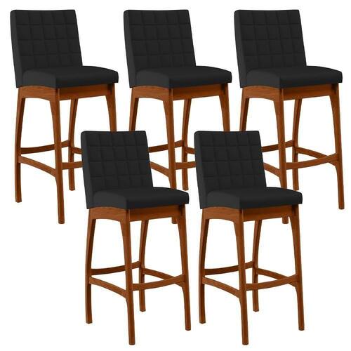 ndo muita excelência, o Kit 05 Banquetas Altas Para Cozinha Sala De Jantar Fixa Mila B04 Facto Preto Fosco - Lyam Decor é o complemento que faltava para deixar sua casa ainda mais extraordinária. Seu encosto com costura em padrão quadriculado e assento estofados, centralizam em si uma graciosidade estonteante, sem perder todo o seu conforto. A estrutura em madeira, na cor nozes, também é digna de notoriedade, por imprimir bastante personalidade a sua decoração. Vale ressaltar ainda, o apoio para os pés que garante maior à mesma.