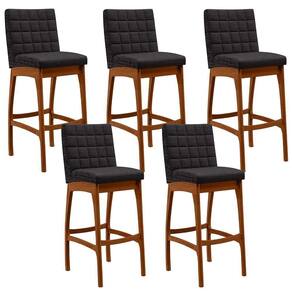 Entregando muita excelência, o Kit 05 Banquetas Altas Para Cozinha Sala de Jantar Fixa Mila B04 Linho Chumbo - Lyam Decor é o complemento que faltava para deixar sua casa ainda mais extraordinária. Seu encosto com costura em padrão quadriculado e assento estofados, centralizam em si uma graciosidade estonteante, sem perder todo o seu conforto. A estrutura em madeira, na cor nozes, também é digna de notoriedade, por imprimir bastante personalidade a sua decoração. Vale ressaltar ainda, o apoio para os pés que garante maior à mesma.
