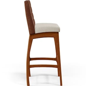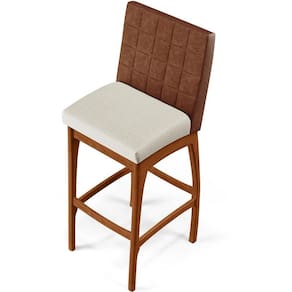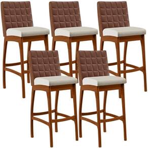 ndo muita excelência, o Kit 05 Banquetas Altas Sala De Jantar Fixa Mila B04 Couríssimo Marrom Linho Champagne - Lyam Decor é o complemento que faltava para deixar sua casa ainda mais extraordinária. Seu encosto com costura em padrão quadriculado e assento estofados, centralizam em si uma graciosidade estonteante, sem perder todo o conforto. A estrutura em madeira, na cor nozes, também é digna de notoriedade, por imprimir bastante personalidade a sua decoração. Vale ressaltar ainda, o apoio para os pés que garante maior à banqueta.