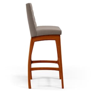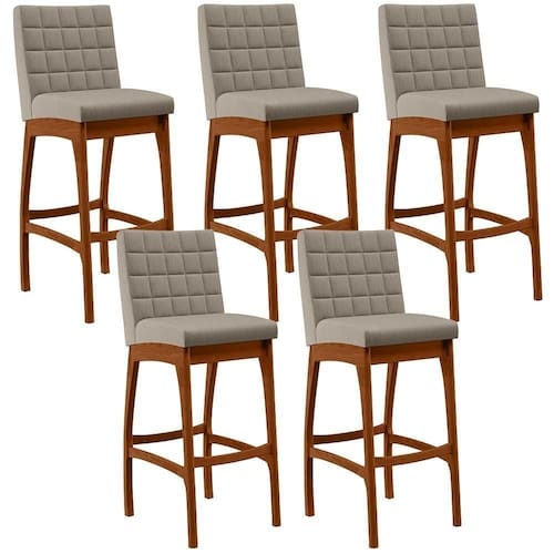 Entregando muita excelência, o Kit 05 Banquetas Altas Para Cozinha Sala de Jantar Fixa Mila B04 Linho Bege - Lyam Decor é o complemento que faltava para deixar sua casa ainda mais extraordinária. Seu encosto com costura em padrão quadriculado e assento estofados, centralizam em si uma graciosidade estonteante, sem perder todo o seu conforto. A estrutura em madeira, na cor nozes, também é digna de notoriedade, por imprimir bastante personalidade a sua decoração. Vale ressaltar ainda, o apoio para os pés que garante maior segurança à mesma.
