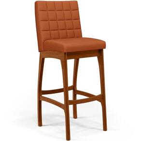 ndo muita excelência, o Kit 05 Banquetas Altas Para Cozinha Sala De Jantar Fixa Mila B04 Tecido Terracota - Lyam Decor é o complemento que faltava para deixar sua casa ainda mais extraordinária. Seu encosto com costura em padrão quadriculado e assento estofados, centralizam em si uma graciosidade estonteante, sem perder todo o conforto. A estrutura em madeira, na cor nozes, também é digna de notoriedade, por imprimir bastante personalidade a sua decoração. Vale ressaltar ainda, o apoio para os pés que garante maior segurança à mesma. Pode ser acomodado em cozinha americana, ambientes integrados, espaços gourmets, bancadas ou em seu home bar, independente do lugar, desperta logo de cara bastante elegância e deixa tudo mais despojado, perfeita para criar um ambiente harmonioso e agradável para receber a família e amigos, quando favorável. Não perca tempo e adquira já a sua!!
