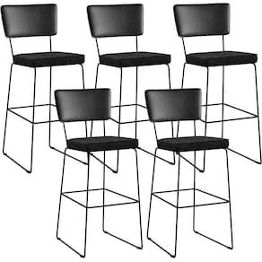 O espetáculo que é o Kit 05 Banquetas Altas Sala Jantar Fixa Allana L02 Couríssimo Preto Linho Chumbo - Lyam Decor vem para agregar ainda mais valor na decoração da sua casa. Sua estrutura em aço remete-nos ao estilo industrial que surgiu em Nova York no século XX, já o assento e encosto estofados trazem equilíbrio e conforto criando a combinação perfeita para o ambiente.