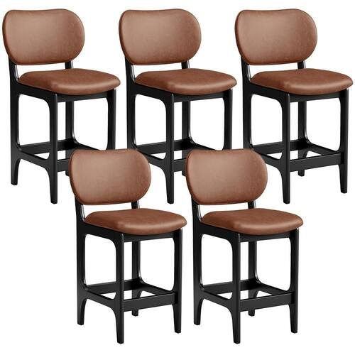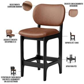 Amplamente sofisticada, o Kit 05 Banquetas Baixa Bar Cozinha Sala Jantar Betta L02 Couríssimo Marrom - Lyam Decor irá agregar ainda mais valor em sua decoração!! Sendo capaz de compor muito bem o ambiente, é produzida com materiais de excelente qualidade, a resistente estrutura em madeira de Taeda, na cor Preto, conta com apoio para os pés (que garante maior ), além do assento e encosto estofados super confortáveis e convidativos, que são revestidos em tecido Couríssimo, composição extremamente elegante.