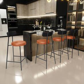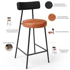 Amplamente moderna, dispondo de muito realce e design singular, o Kit 05 Banquetas Baixa Para Cozinha Sala De Jantar Bar Bancada Milão L02 Couríssimo Preto Brilho Couríssimo Camel - Lyam Decor vem com a personalidade e elegância que sua decoração merece! Estruturada em aço carbono, contrasta lindamente com o encosto e assento estofados, cabe mencionar ainda seu revestimento em Couríssimo, é confeccionada por materiais de excelente qualidade, extremamente resistentes e aconchegantes.