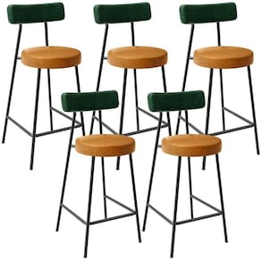Kit 05 Banquetas Baixa Cozinha Sala Jantar Bancada Milão L02 Facto Verde Couríssimo Whisky - Lyam Decor